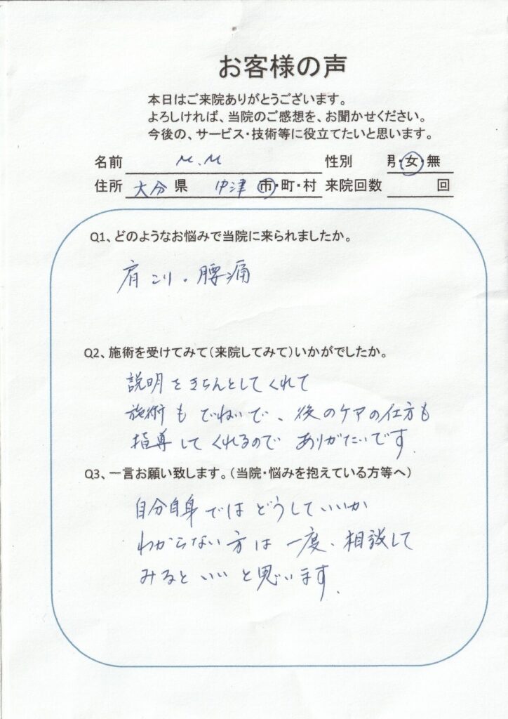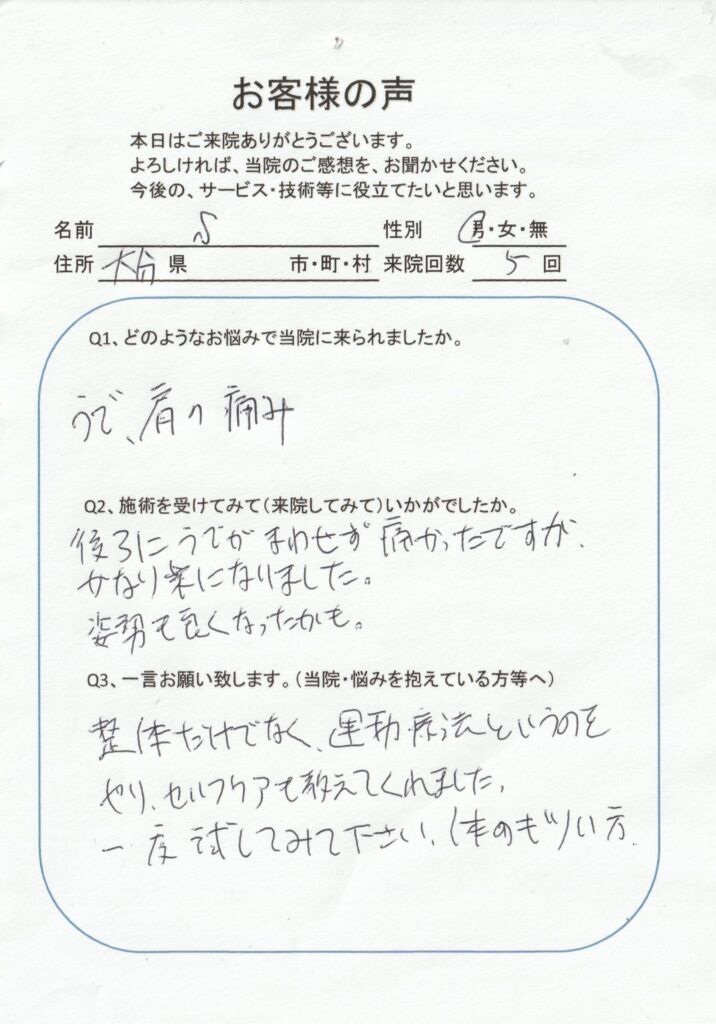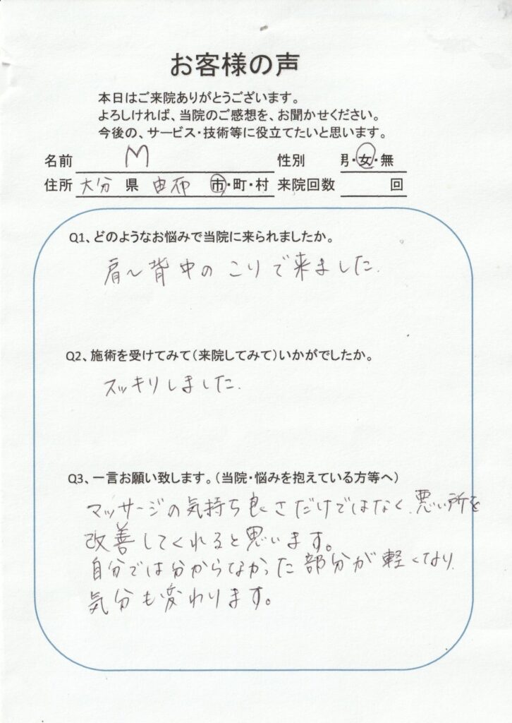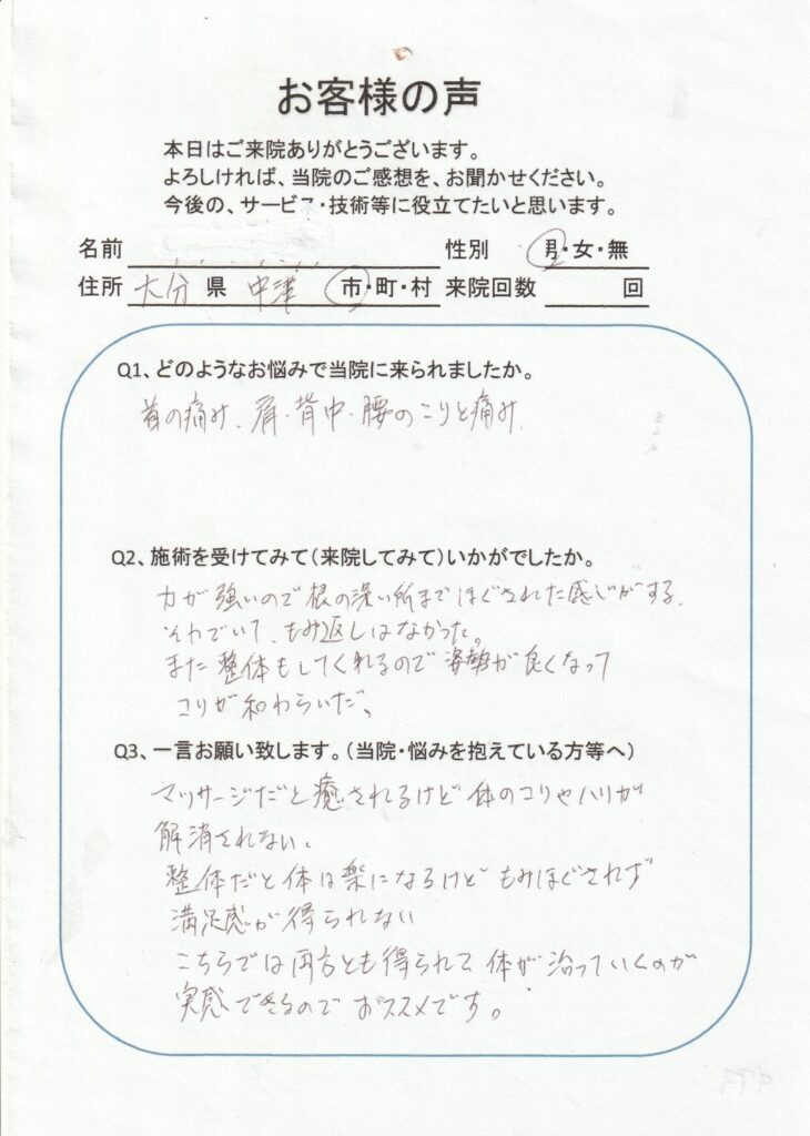 肩~背中のコリで来ました