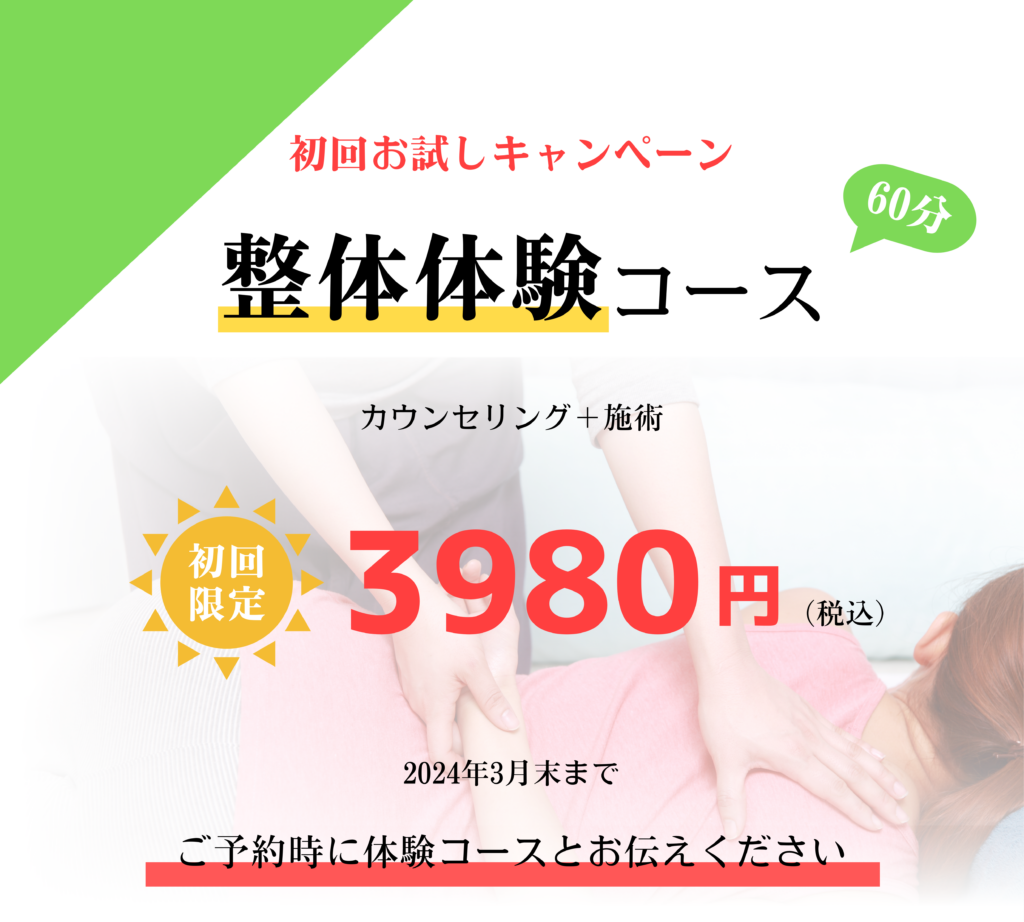 幼少より整形外科に通い、30代以降は定期的には整体・整骨に通う日々でした。