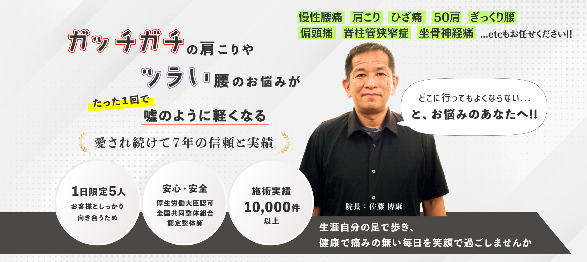 このような経験をもとに、私と同じように慢性痛に悩んでいる方の力になりたい。と開院を決断しました。